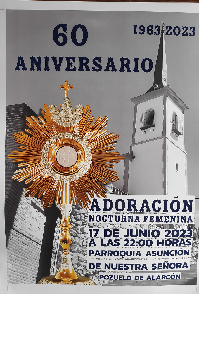 El próximo 17 de Junio a las 22, en nuestra parroquia, se celebrará una adoración nocturna en conmemoración de los 60 años ( 1963-2023).
