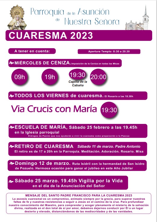 Comienza la Cuaresma 2023 , el próximo miércoles día 22.
