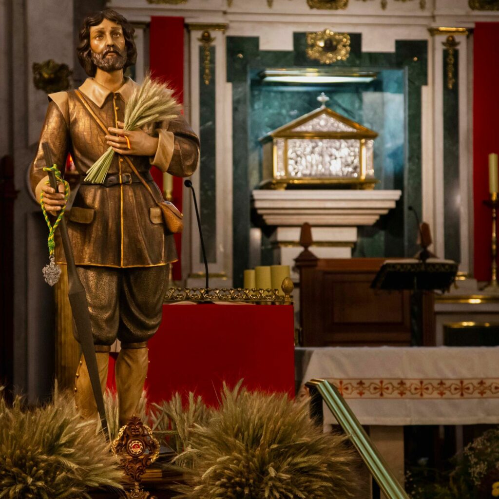 El patrón de los agricultores y de la capital gozó de reconocida devoción en el Pozuelo rural de los antiguos tiempos, pero con la llegada de la urbanización se fue quedando en el olvido poco a poco, ya que las entidades que lo sustentaban lo han dejado perder, ya que nunca contó con cofradía propia: primero la desaparecida hermandad de labradores de Pozuelo, y luego la concejalía de jardines de Pozuelo. En recuerdo de lo que fue y del estrecho vínculo que une Pozuelo a Madrid, la Congregación de Ntra. Sra. De la Consolación colocó en 2001 una imagen del santo a la derecha de la Patrona en el nuevo retablo barroco.