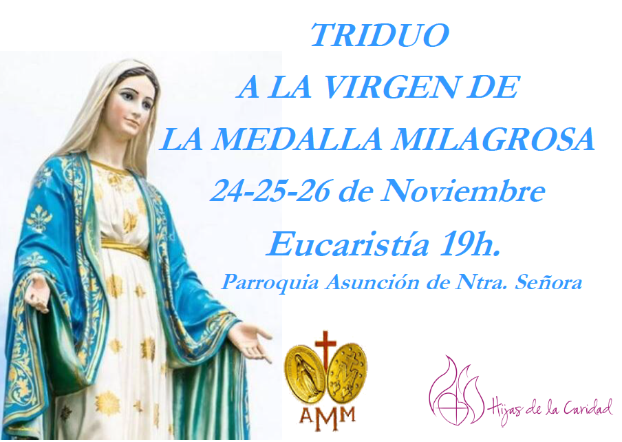 La Virgen Milagrosa es una advocación de la Virgen María que se celebra el 27 de noviembre. La historia de la Virgen de la Medalla Milagrosa se remonta al 27 de noviembre de 1830, cuando Santa Catalina Labouré tuvo una visión de la Virgen María en la capilla de la Rue du Bac en París. La Virgen le pidió que mandara hacer una medalla con su imagen y que quien la llevase recibiría grandes gracias. Esta aparición se repitió varias veces, dejando patente el encargo de la Madre de Dios.